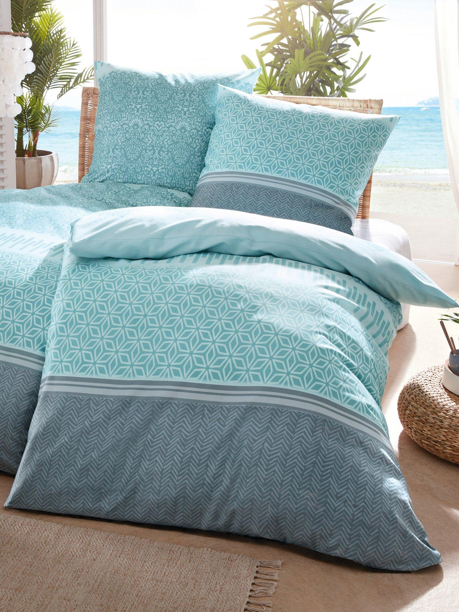 Biberna Bettwasche 3tlg Blau Edelseersucker Petrol Grau